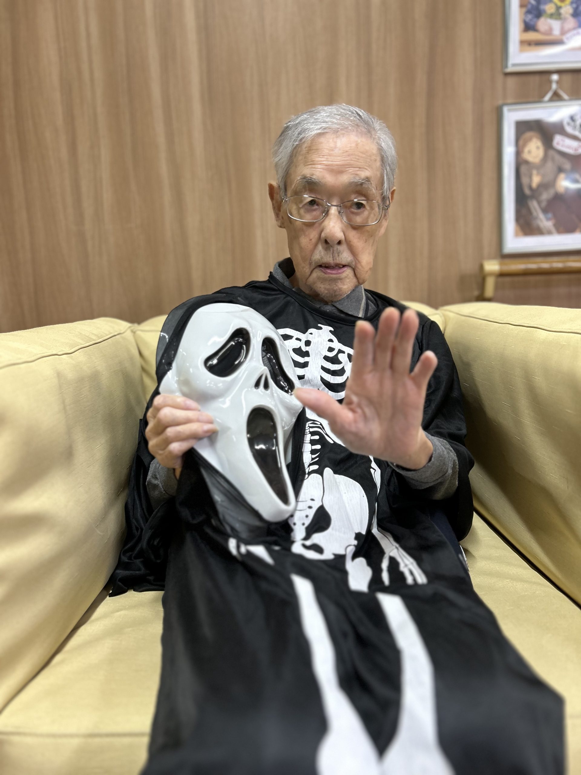 かなりノリノリで、お面も自主的に付けて「似合う?」と見せ合いっこ。