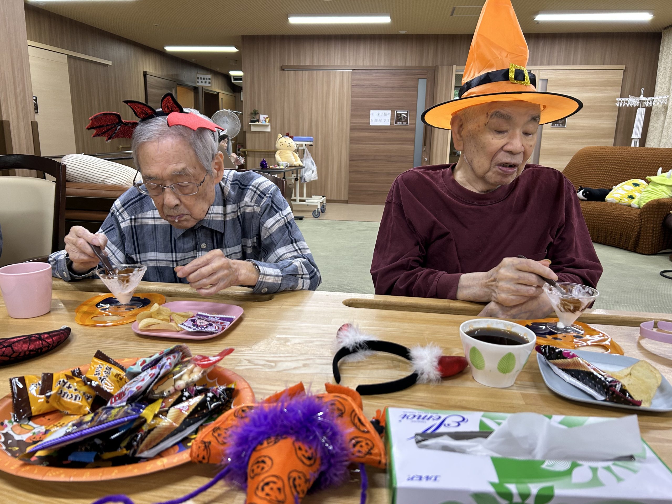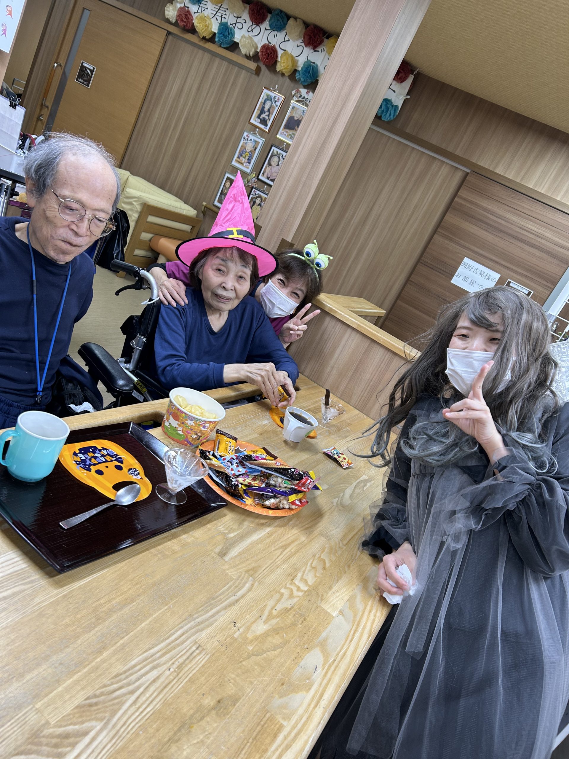 それぞれ仮装で記念写真や、お菓子を食べながらワイワイ楽しい時間を過ごしました。