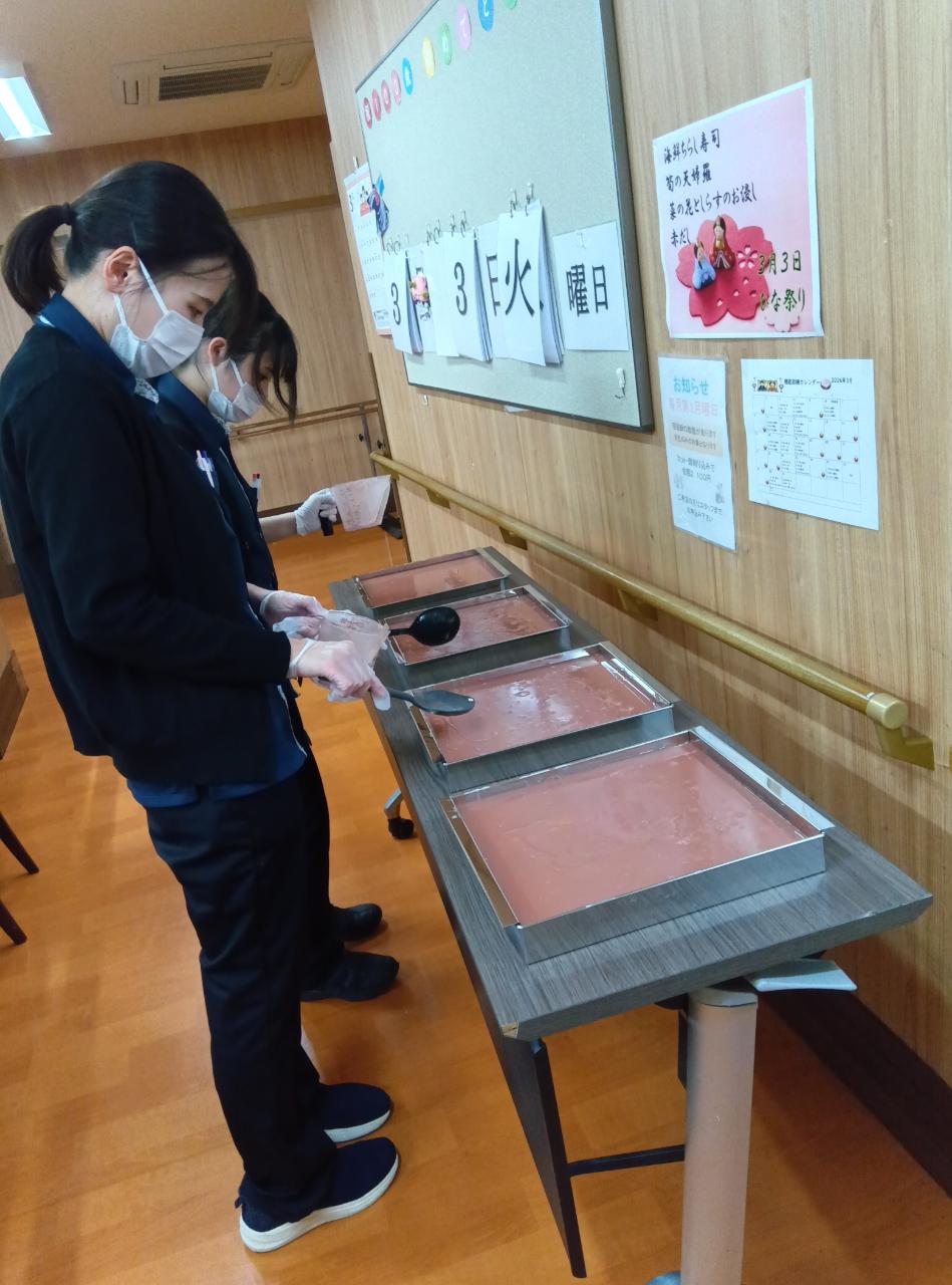 ご利用者様も、「お雛さんでひし餅を思い出したわぁ~」「甘くて美味しかった~!(^^)!」とあっという間に召し上がって頂き、お写真を撮る間も無かったです…😅