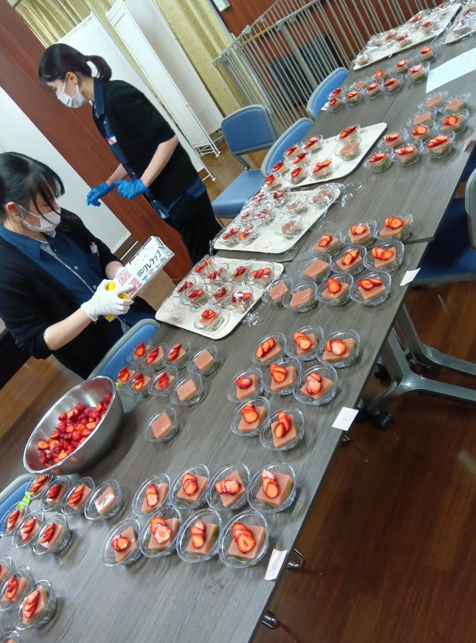 今日は3月3日、ひな祭りでおやつを栄養課で用意しました♪